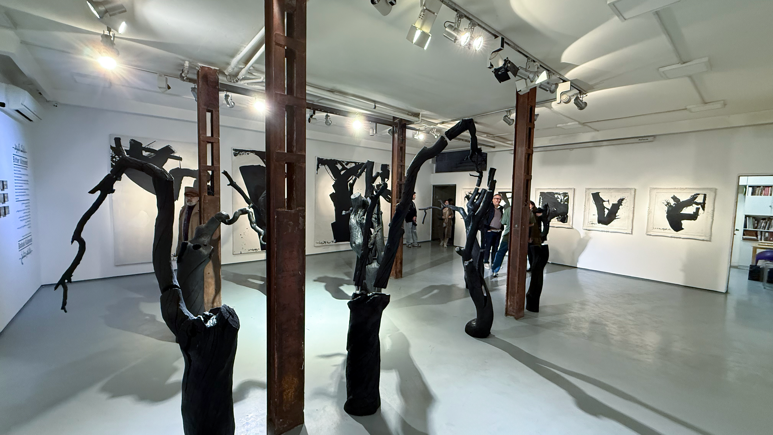 Working primarily with oil and found objects, Kabood employs crosshatching and tonal gradations to sculpt light from shadow. His surfaces evoke weathered bark and cracked earth, while negative space breathes with absence. The exhibition also features sculptural installations – assemblages of "uncomprehended bodies" – extending his meditation on the weight of invisibility.