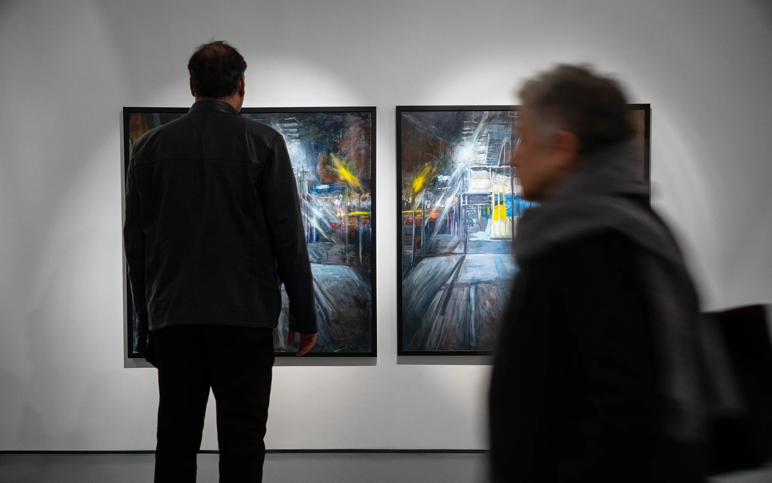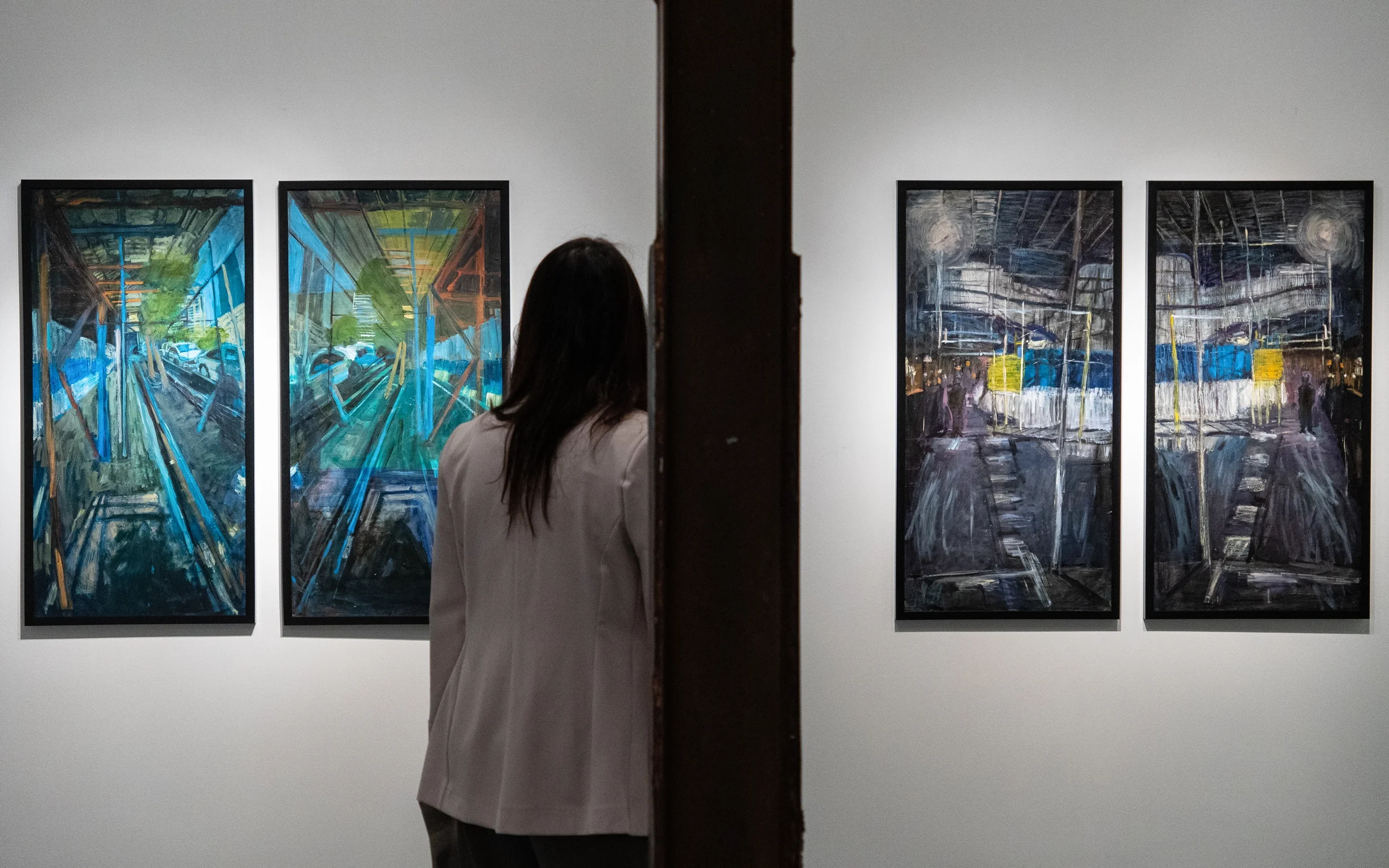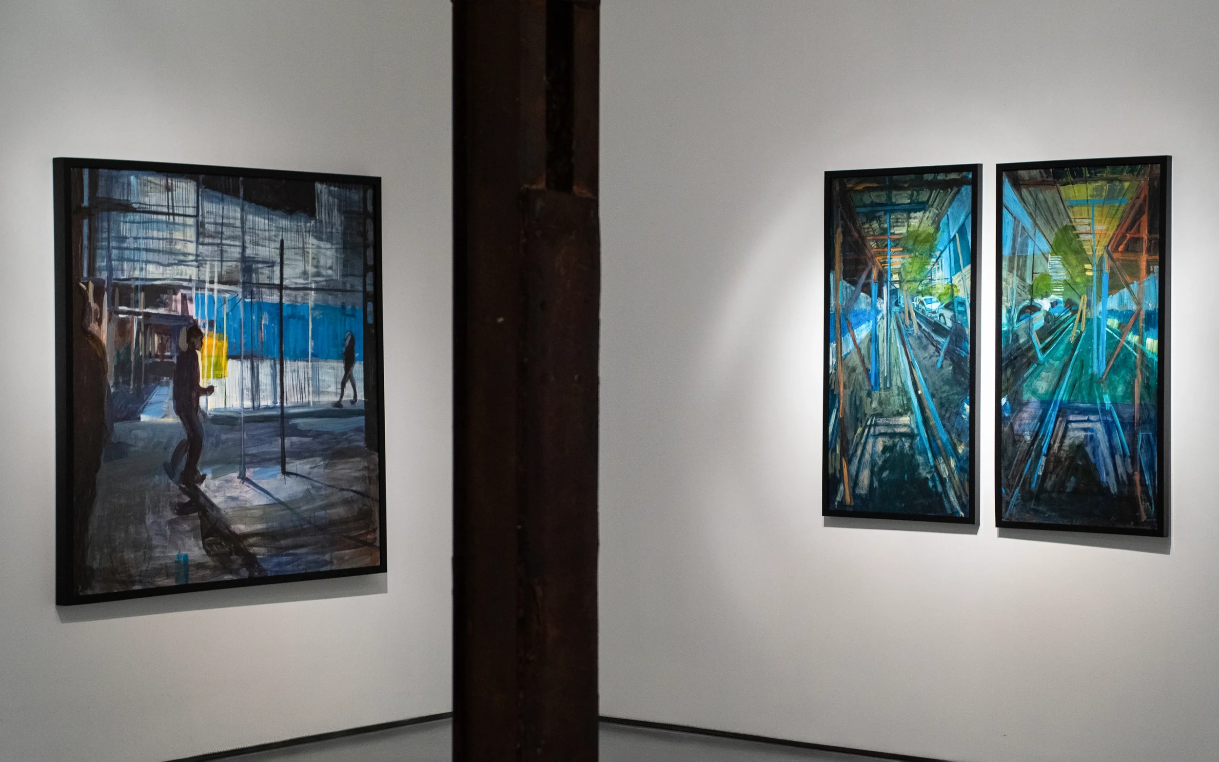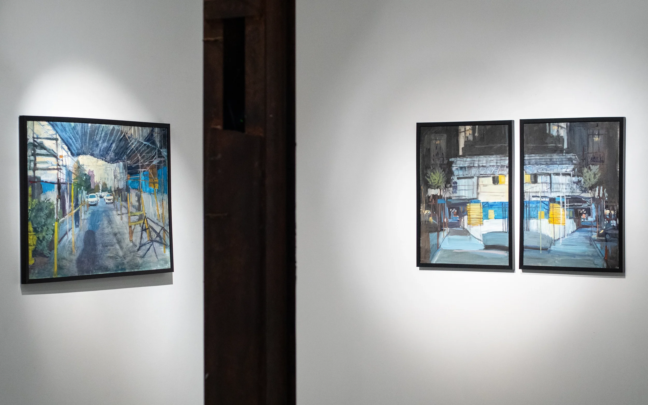 The paintings are characterized by an expressive, gestural brushwork and a dark, indistinct palette that intensifies the feeling of psychological disturbance and ambiguity. Some works feature lighting that suggests looking through tear-filled eyes, creating a liminal space between reality and nightmare. The artist explains that the works were created from a combination of on-site observation, photography, and studio work, reflecting her mental and visual memory of the city.